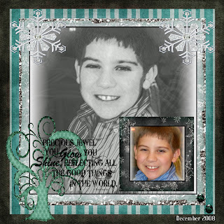 This is a Lo of Dylan with Father Christmas. The large photo in the back is of Dylan talking with him and of course the question asked was "What would you like for christmas?" and the words that came out of our Beautiful 10 Year olds mouth couldn't have made me more proud. He said with such a serious face "World Peace". He really is an amazing child! Credits: Snowraven's Christmas Glory 1 Kit found at Scraphead and Magickal Scraps. Credits: Wordart by Inspired Mommie Designs. You can get this great new wordart at Pretty Scrappy.